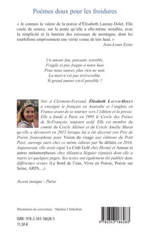 "Je connais la valeur de la poésie d'Elisabeth Launay-Dolet. Elle coule de source, sur la pente qu'elle a elle-même installée, avec la simplicité et la lumière des ruisseaux de montagne, dont les tourbillons emprisonnent une vérité venue de très haut." Jean-Louise Ezine.