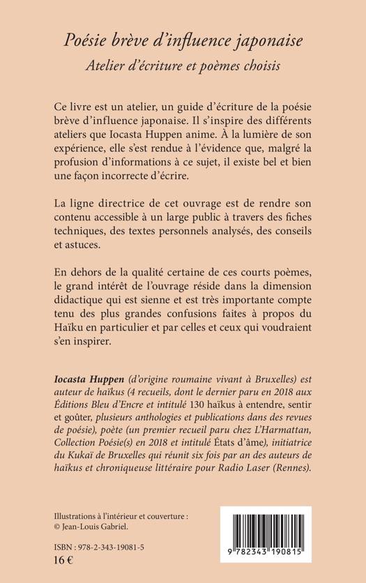 Ce livre est un atelier, un guide d'écriture de la poésie brève d'influence japonaise. La ligne directrice de cet ouvrage est de rendre son contenu accessible à un large public à travers des fiches techniques, des textes personnels analysés, des conseils et astuces.