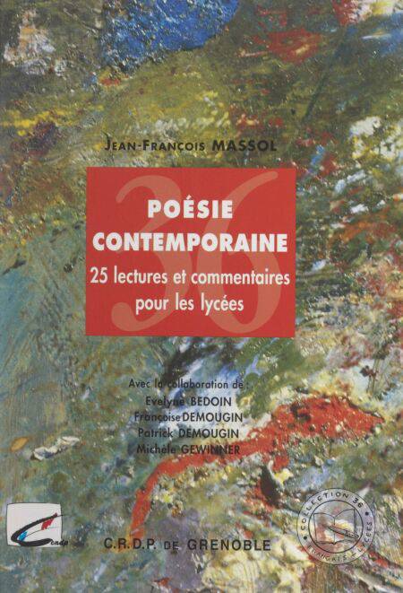 Lisez-vous les contemporains ? A côté des classiques, faites-vous étudier des textes de poètes vivants ? La question de l'ouverture des programmes en direction de ce qui s'écrit aujourd'hui revient à intervalles réguliers. On trouvera dans ce livre une proposition détaillée et nuancée dans ses applications possibles. De leur incursion dans la profusion des recueils contemporains, les auteurs ont ramené vingt-cinq poèmes composés dans les formes les plus diverses, qu'ils ont réunis en six groupements et méthodiquement analysés. D'Olivier Cadiot à Henri Thomas, 17 poètes reconnus et moins connus se trouvent ici présentés. Ce plaidoyer en action pour une lecture des textes contemporains est aussi une façon d'interroger certaines formes actuelles du commentaire de texte. Les auteurs : professeur certifié de Lettres Modernes (collège), Evelyne BEDOIN est chargée de cours à l'Université d'Orléans; professeur agrégé des Lettres classiques, docteur ès lettres, Françoise DEMOUGIN enseigne à l'Université de Montpellier; professeur agrégé des Lettres modernes, docteur ès lettres, Patrick DEMOUGIN est formateur à l'I.U.F.M. de Montpellier; professeur certifié de Lettres Modernes, titulaire d'un D.E.A. de didactique, Michèle GEWINNER est en poste au lycée français de Mexico; agrégé des Lettres classiques et docteur de 3ème cycle en littérature française, Jean-François MASSOL est maître de conférences à l'I.U.F.M. de Grenoble.