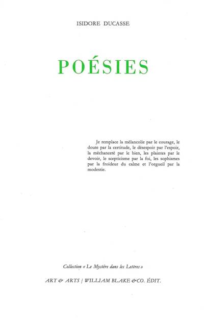Un texte en prose, brûlot littéraire, issu des oeuvres complètes du comte de Lautréamont.
