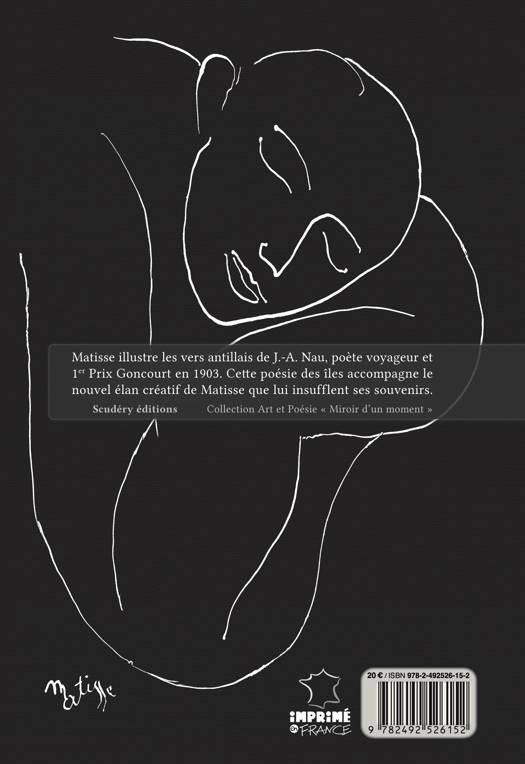 Henri Matisse illustre par de superbes lithographies les vers antillais de John-Antoine Nau, poète voyageur et premier lauréat du Prix Goncourt en 1903. Ce recueil est son dernier livre d’artiste publié après sa mort. Dans sa dernière période de création foisonnante et lumineuse, cette poésie des îles accompagna le nouvel élan créatif de Matisse que lui insufflèrent ses souvenirs des Antilles et de Tahiti. Cette anthologie des poèmes de Nau sur les Antilles, choisis par Matisse lui-même, est suivie du célèbre écrit de Matisse « Notes d’un peintre » et d’une postface culturelle.