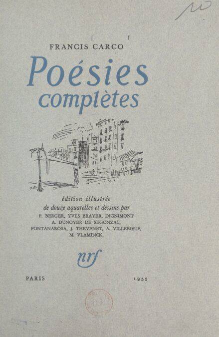 « J’errais tristement dans la rue, quand soudain tu m’es apparue avec ton rire séduisant, et tes yeux clairs m’ont fait envie. Sans trop savoir je t’ai suivie, comme un amoureux de quinze ans. » Superbement illustré d'aquarelles et dessins de Berger, Brayer, Dignimont, Dunoyer de Segonzac, Fontanarosa, Thevenet, Villeboeuf, ou Vlaminck, voici un recueil des poèmes en prose de Francis Carco (1886-1958).
