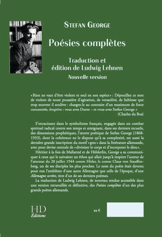« Rien ne vaut d’être violent et seul en son espèce » : Dépouillez ce mot de violent de toute poussière d’agitation, de versatilité, de faiblesse que trop souvent il soulève : chargez-le au contraire d’un maximum de force concentrée, éruptive : vous avez Dante – et vous avez Stefan George. (Charles du Bos) S’enracinant dans le symbolisme français, engagée dans un combat spirituel radical contre son temps et atteignant, dans ses derniers recueils, des dimensions prophétiques, l’oeuvre poétique de Stefan George (1868-1933), dont la cohérence ne le dispute qu’à sa complexité, est aussi la dernière grande inscription du motif « grec » dans la littérature allemande, avec pour devise centrale de « diviniser le corps et d’incorporer le dieu ». Héritier à la fois de Mallarmé et de Hölderlin, George a su communiquer à ceux qui le suivaient un éthos qui allait jusqu’à inspirer l’auteur de l’attentat du 20 juillet 1944 contre Hitler, le comte Claus von Stauffenberg, un de ses disciples les plus proches. Le nom du poète était devenu pour eux l’emblème d’une autre Allemagne que celle de l’époque, d’une Allemagne secrète, titre d’un de ses derniers poèmes. La traduction de Ludwig Lehnen, de nouveau rendue accessible dans une version retravaillée et définitive, des Poésies complètes d’un des plus grands poètes allemands.