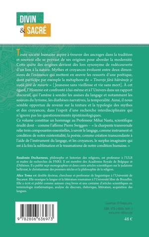Ce volume constitue un hommage au Professeur Mihai Nasta, scientifique érudit dont - comme l'affirme Pierre Swiggers - « la charpente transversale relie trois composantes essentielles, à savoir le langage, comme instrument et condition de notre existentialité, la poésie, comme création transcendante à l'aide de l'instrument du langage, et les croyances, le surplus imaginaire qui est à la fois la sublimation et le traumatisme de notre condition humaine. »