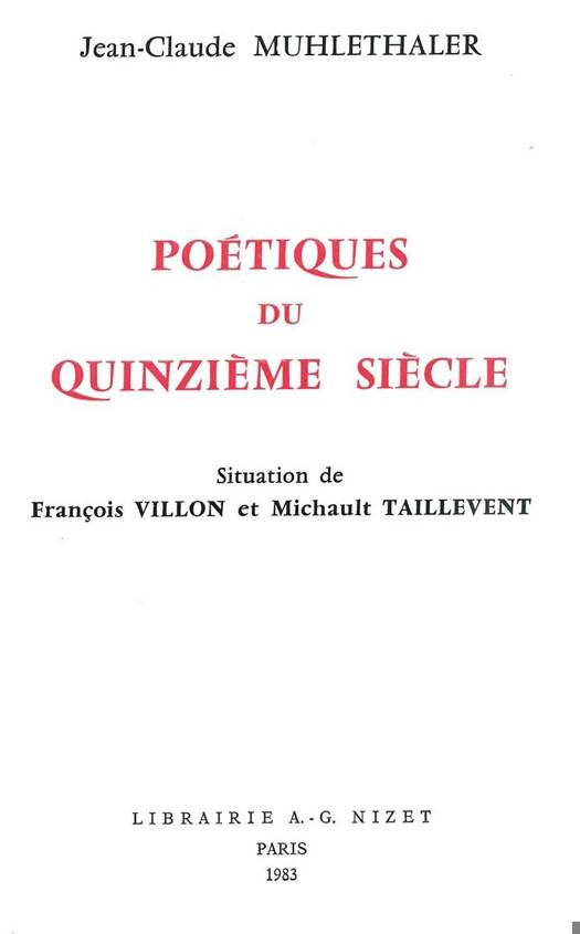 Étude portant sur les créations poétiques au XVe siècle, en France. L'analyse, structurelle et contextuelle, est axée sur les œuvres de François Villon et de Michault Taillevent (auteur et joueur de farces au service de Philippe le Bon), son plus notable précurseur.