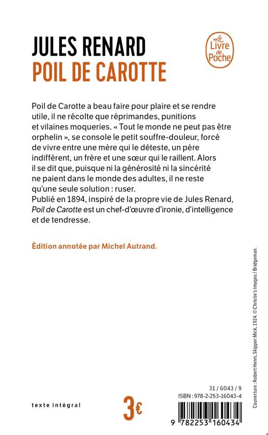 Mme Lepic n'aime pas son petit dernier aux cheveux roux. « Tout le monde ne peut pas être orphelin », se répète Poil de Carotte, et il nous livre ses idées personnelles, « ainsi nommées parce qu'il faut les garder pour soi ». Ni la générosité ni la sincérité ne paient dans le monde des adultes. Il faut ruser.