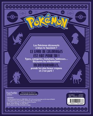 Le premier Pokédex à colorier réunissant les Pokémon de la région de Unys Découvre les types, les faiblesses, les catégories et les chaînes évolutives des Pokémon de Unys Colorie les Pokémon et complète ton propre Pokédex de Vipélierre à Genesect Résumé : Les Pokémon découverts à Unys te fascinent ? CE LIVRE DE COLORIAGES EST FAIT POUR TOI !...