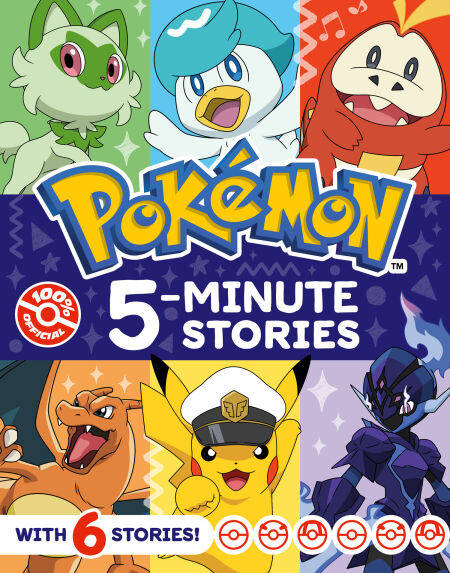 An exciting collection of six action-packed Pokémon adventure stories. Featuring all your favourite characters from the hit TV animation, Pokémon Horizons, available on BBC iPlayer. Meet Liko and Roy as they journey across Paldea and beyond in search of adventure, fun and friendship. The friends join the crew of adventurers called the Rising Volt Tacklers aboard their airship, the Brave Olivine. In these six stories you can expect lots of new Pokémon friends, teamwork, battles with shady villains, solving mysteries and exciting battle training sessions. With stories short enough to read in five minutes, they are perfect for reading aloud to your child, or encouraging your child to read alone. Reading at bedtime or any other time of the day, these stories will captivate and entertain any Pokémon fan again and again. Stories Featured: • Sprigatito’s Rescue• Fuecoco Has a Snack• Training with Captain Pikachu• Welcome to Paldea!• Fly, Wattrel!• Teamwork Training