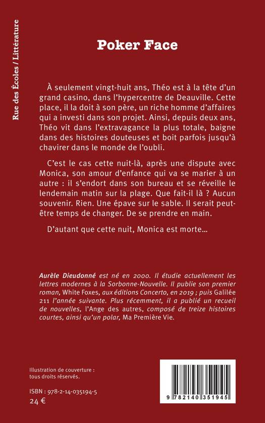 À seulement vingt-huit ans, Théo est à la tête d'un grand casino, dans l'hypercentre de Deauville. Cette place, il la doit à son père, un riche homme d'affaires qui a investi dans son projet. Ainsi, depuis deux ans, Théo vit dans l'extravagance la plus totale, baigne dans des histoires douteuses et boit parfois jusqu'à chavirer dans le monde de l'oubli. C'est le cas cette nuit-là, après une dispute avec Monica, son amour d'enfance qui va se marier à un autre : il s'endort dans son bureau et se réveille le lendemain matin sur la plage. Que fait-il là ? Aucun souvenir. Rien. Une épave sur le sable. Il serait peut-être temps de changer. De se prendre en main. D'autant que cette nuit, Monica est morte…
