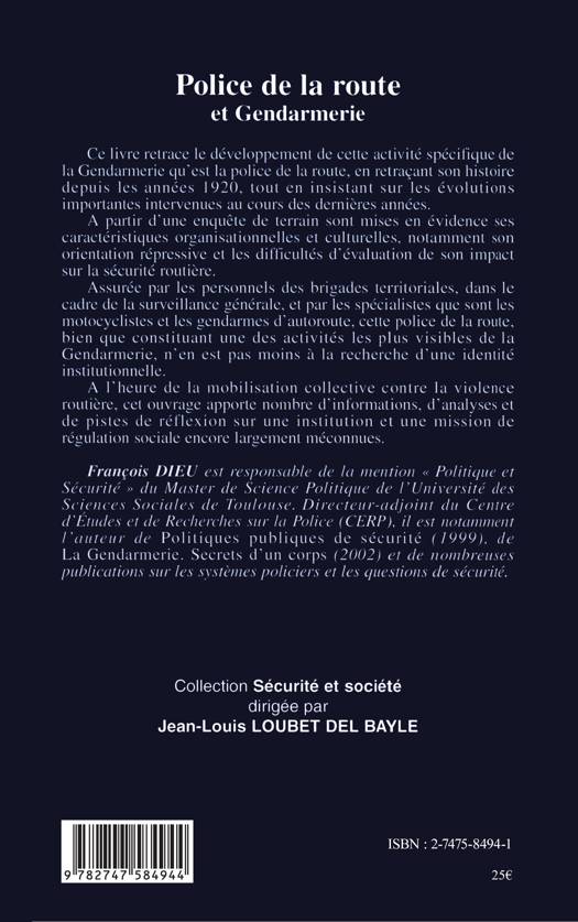 Ce livre retrace le développement de cette activité spécifique de la gendarmerie qu'est la police de la route, en retraçant son histoire depuis les années 1920, tout en insistant sur les évolutions importantes intervenues au cours des dernières années. A partir d'une enquête de terrain sont mises en évidence ses caractéristiques organisationnelles et culturelles, notamment son orientation répressive et les difficultés d'évaluation de son impact sur la sécurité routière.