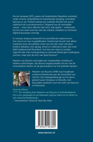 In scherpe analyses bespreekt hij verschillende staatsvormen, hun risico’s en hun mogelijkheden. Daarbij laat hij zich niet alleen inspireren door de politieke crises van zijn tijd, maar ook door bredere debatten over gezag, verzet en collectieve rede. Zijn inzet blijft fundamenteel filosofisch: hoe kan een staat zo worden ingericht dat vrije meningsuiting en rationeel debat geen bedreiging vormen, maar juist de kern van goed bestuur?