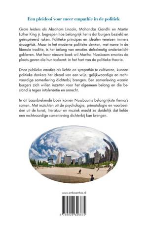 Martha Nussbaum is een van ’s werelds invloedrijkste politieke denkers. In haar nieuwe boek 'Politieke emoties' voegt zij haar belangrijkste gedachtegoed – de filosofie van emoties en de theorie van sociale rechtvaardigheid – samen tot een pleidooi voor meer empathie in het politieke denken. In de moderne politiek, met name in de liberale traditie, wordt het belang van emoties stelselmatig onderbelicht. Met haar nieuwe boek wil Martha Nussbaum emoties de plaats geven die hun toekomt: in het hart van de politieke theorie.