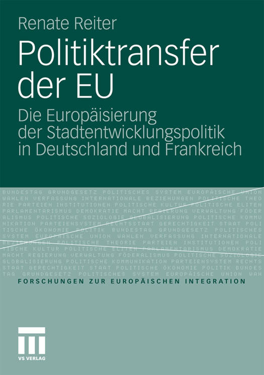 Der Politiktransfer, d. h. die Verbreitung und Übertragung von Wissens- und Erfahrungsbeständen über Politikinhalte, Verfahrensweisen staatlicher Akteure und die ideengeleitete Strukturierung politikfeldspezifischer Institutionensysteme von einem Politikkontext in einen anderen bildet seit einiger Zeit einen Interessengegenstand der politikwissenschaftlichen EU-Forschung. Renate Reiter analysiert den Politiktransfer der EU in der europäischen Regionalpolitik. Hier strebte die Europäische Kommission seit Mitte der 1990er Jahre die Erneuerung der lokalstaatlichen Governance der Stadtentwicklung und die Anpassung der nationalen Stadtentwicklungspolitiken an. Die Autorin entwickelt ein Analyseraster und wendet dieses für die EU-Mitgliedstaaten Deutschland und Frankreich an. Die Wirkungsanalyse der europäischen Stadtentwicklungspolitik, verstanden als EU-Ansatz zum Politiktransfer, liefert überraschende Ergebnisse und stellt einige Annahmen der Europäisierungsforschung in Frage.