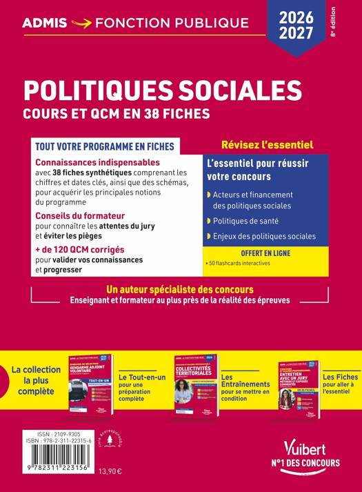 38 fiches de cours et d'entraînement pour tout comprendre des politiques sociales et réussir vos concours !