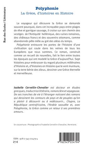 Le voyageur qui découvre la Grèce se demande souvent pourquoi, dans cet incroyable pays entre plages de rêve et garrigue sauvage, il croise sur son chemin des vestiges de l’Antiquité hellénique, des ruines romaines, des châteaux francs et des souvenirs ottomans, comme abandonnés pêle-mêle au gré des aléas du temps. Polyphonie entrouvre les portes de l’histoire d’une civilisation qui coule dans les veines de tous les Européens que nous sommes. Ce roman, construit comme un recueil de nouvelles, fait le lien entre toutes les époques qui ont modelé la Grèce d’aujourd’hui. Sept histoires pour embrasser du regard plusieurs millénaires d’Histoire et, d’histoires en Histoire que le vent murmure, sur la terre bénie des dieux, dessiner une Grèce éternelle et merveilleuse.