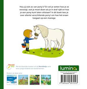 Hou jij ook zo van pony’s? En wil je weten hoe je ze verzorgt, wat je moet doen als je in draf rijdt en hoe je een pony kunt laten stilstaan? In dit boek lees je over allerlei verschillende pony’s en hoe het eraan toegaat op een manege.