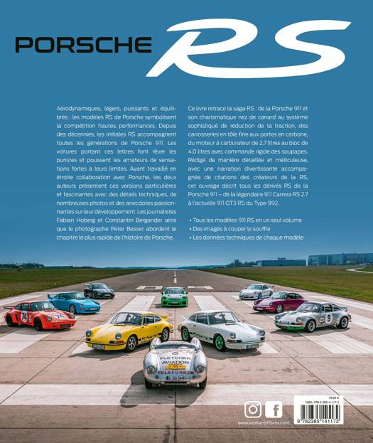 Aérodynamiques, légers, puissants et équilibrés : les modèles RS de Porsche symbolisent la compétition hautes performances. Depuis plus de cinquante ans, les initiales RS accompagnent toutes les générations de Porsche 911. Les voitures portant ces lettres font rêver les puristes et poussent les amateurs de sensations fortes à leurs limites. Ayant travaillé en étroite collaboration avec Porsche, les deux auteurs présentent ces versions particulières et fascinantes avec des détails techniques, de nombreuses photos et des anecdotes passionnantes sur leur développement. Les journalistes Fabian Hoberg et Constantin Bergander ainsi que le photographe Peter Besser abordent le chapitre le plus rapide de l’histoire de Porsche. Ce livre retrace la saga RS : de la Porsche 911 et son charismatique nez de canard au système sophistiqué de réduction de la traction, des carrosseries en tôle fine aux portes en carbone, du moteur à carburateur de 2,7 litres au bloc de 4,0 litres avec commande rigide des soupapes. Rédigé de manière détaillée et méticuleuse, avec une narration divertissante accompagnée de citations des créateurs de la RS, cet ouvrage décrit tous les dérivés RS de la Porsche 911 – de la légendaire 911 Carrera RS 2.7 à l’actuelle.