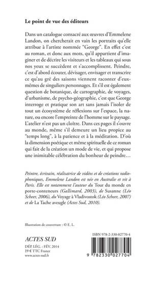 Dans un catalogue consacré aux oeuvres d'Emmelene Landon, on chercherait en vain les portraits qu'elle attribue à l'artiste nommée "George". En effet c'est au roman, et donc aux mots, qu'il appartient d'imaginer et de décrire les visiteurs et les tableaux qui sous nos yeux se succèdent et s'accomplissent. Peindre, c'est d'abord écouter, dévisager, envisager et transcrire ce qu'au gré des saisons viennent raconter d'euxmêmes de singuliers personnages. Et s'il est également question de botanique, de cartographie, de voyages, d'urbanisme, de psycho-géographie, c'est que George interroge et pratique son art sans jamais l'isoler de tout un écosystème de réflexions sur l'espace, la nature, ou encore l'empreinte de l'homme sur le paysage. L'atelier n'est pas un cloître. Dans ces pages il s'ouvre au monde, même s'il demeure un lieu propice au "temps long", à la patience et à la méditation. D'où la dimension poétique et même spirituelle de ce roman qui fait de la création un mode de vie, et qui propose une inimitable célébration du bonheur de peindre...