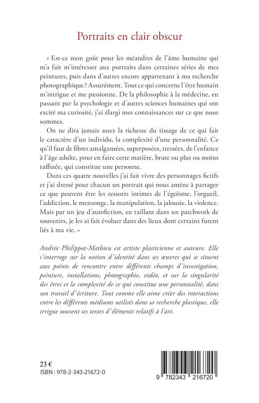 «Tout ce qui concerne l’être humain m’intrigue et me passionne. On ne dira jamais assez la richesse du tissage de ce qui fait le caractère d’un individu, la complexité d’une personnalité. Ce qu’il faut de fibres amalgamées, superposées, tressées, de l’enfance à l’âge adulte, pour en faire cette matière, brute ou plus ou moins raffinée, qui constitue une personne. Dans ces quatre nouvelles j’ai fait vivre des personnages fictifs et j’ai dressé pour chacun un portrait qui nous amène à partager ce que peuvent être les ressorts intimes de l’égoïsme, l’orgueil, l’addiction, le mensonge, la manipulation, la jalousie, la violence. Mais par un jeu d’autofiction, en taillant dans un patchwork de souvenirs, je les ai fait évoluer dans des lieux dont certains furent liés à ma vie. »