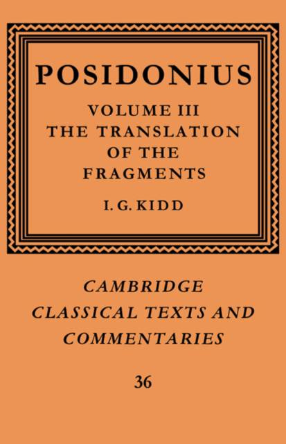 This book translates the surviving evidence for one of the most important intellectual figures of the Graeco-Roman world, whose interests spread widely over philosophy, history and the sciences. The translations are accompanied by contextual introductions and explanatory notes, and a general introduction assesses the importance of Posidonius and his contribution. The order of fragments follows exactly that of the ancient texts collected and edited by L. Edelstein and I. G. Kidd in Posidonius Vol. 1 and completes (with Vol. 2 The Commentary) what has become the definitive modern edition.