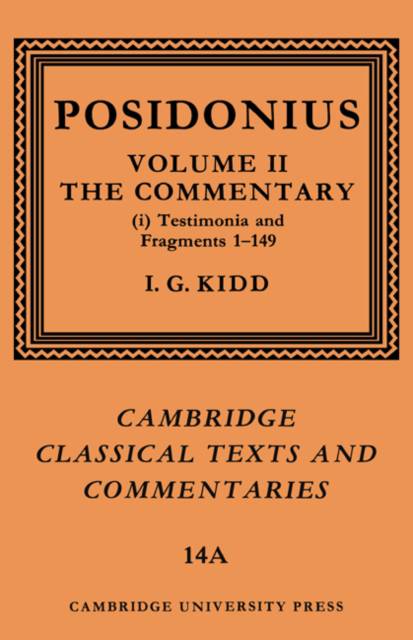 Posidonius was one of the most important philosophers and intellectuals writing in the Greco-Roman world of the first half of the first century B.C. This book is a commentary on the surviving testimonia and fragments of his work collected in volume 1. Its purpose is to explicate and understand the evidence of these fragments, which must form the basis for any estimate of Posidonius' contribution to the learning of his time in the history of ideas. Since Posidonius was reported by at least sixty different writers, an attempt has been made to disentangle what Posidonius said, as distinct from the interpretations and distortions of his reporters. Posidonius wrote at length not only on philosophy, but also on the sciences, and a large History, and Professor Kidd has assessed Posidonius' work against the background of the philosophical, scientific and historical writings of his predecessors, contemporaries amd followers; for this many other related passages are cited and examined.