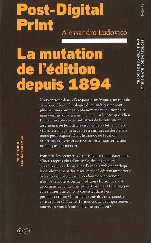 Nous entrons dans « l’ère post-numérique », les technologies du numérique ne sont plus perçues comme un phénomène révolutionnaire, mais plutôt comme appartenant pleinement à notre quotidien. La mutation des industries de la musique et du cinéma, où les fichiers circulent en « bits et octets » via les téléchargements et le streaming, est désormais tenue pour acquise. Dans le monde de l’édition de presse, de livres et de revues, cette transformation ne fait que commencer. Pourtant, les prémices de cette mutation ne datent pas d’hier. Depuis plus d’un siècle, des ingénieurs, des activistes et des artistes d’avant-garde ont anticipé le développement des réseaux et de l’édition numérique. Si la mort du papier, surabondamment annoncée, n’est pas encore advenue, l’édition numérique est désormais devenue une réalité. Comment l’analogique et le numérique vont-ils coexister dans l’ère post-numérique ? Comment vont-ils s’interpénétrer et se dépasser ? Quelles formes et quels comportements nouveaux vont découler de cette mutation ?