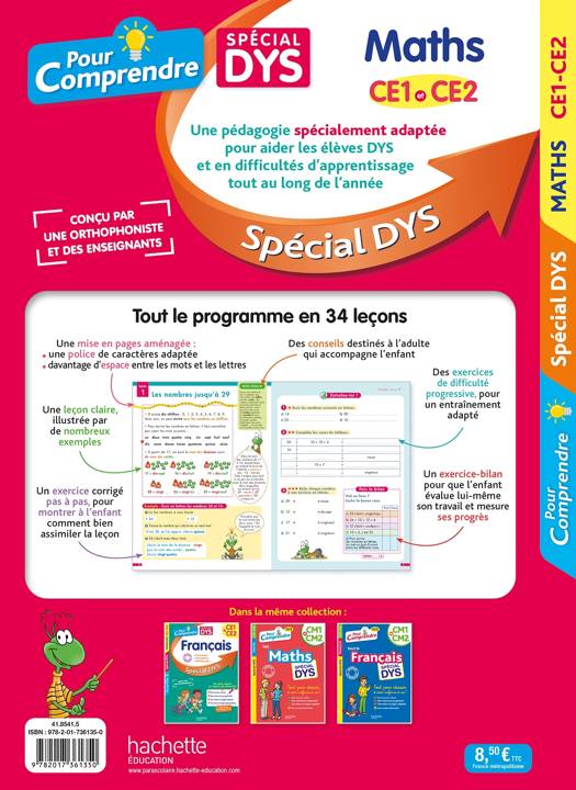 Ce cahier, conçu par une orthophoniste et des enseignants expérimentés, propose une pédagogie spécialement adaptée pour aider les élèves DYS et en difficultés d’apprentissage tout au long de l’année.