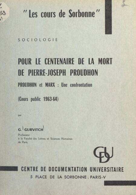 Pour le centenaire de la mort de Pierre-Joseph Proudhon : Proudhon et Marx, une confrontation (cours public 1963-64) EBOOK