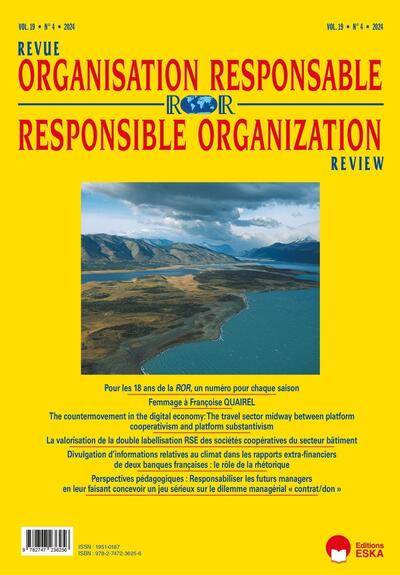 1/ EDITORIAL : Pour les 18 ans de la ROR, un numéro pour chaque saison 2/ La valorisation de la double labellisation RSE des sociétés coopératives du secteur bâtiment 3/ Divulgation d'informations relatives au climat dans les rapports extra-financiers de deux banques françaises : le rôle de la rhétorique. 4/ Responsabiliser les futurs managers en leur faisant concevoir un jeu sérieux sur le dilemme managérial "contrat/don"