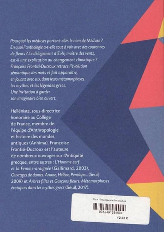 Pourquoi les méduses portent-elles le nom de Méduse ? En quoi l'anthologie a-t-elle tout à voir avec des couronnes de fleurs ? Le délogement d'Éole, maître des vents, est-il une explication au changement climatique ? Savez-vous que l'orchidée est née d'une dispute amoureuse entre deux vents, pour les beaux yeux d'un berger ? Françoise Frontisi-Ducroux retrace l'évolution sémantique des mots et fait apparaître, en jouant avec eux, dans leurs métamorphoses, les mythes et les légendes grecs. Une invitation à garder son imaginaire bien ouvert. Helléniste, sous-directrice honoraire au Collège de France, membre de l'équipe d'Anthropologie et histoire des mondes antiques (Anhima), Françoise Frontisi-Ducroux est l'auteure de nombreux ouvrages sur l'Antiquité grecque.