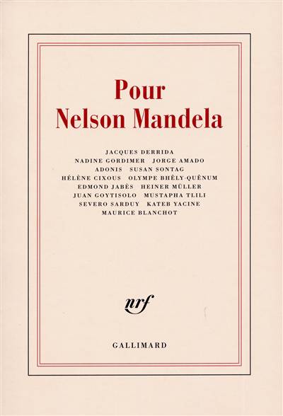 Quinze écrivains saluent Nelson Mandela et le combat dont sa vie porte témoignage. Espace laissé libre dans l'approche et ouvert à la plus grande variété des formes, ce livre ne se veut ni cri, ni prise de position de circonstance, mais poèmes (Adonis, Edmond Jabès, Severo Sarduy), fictions (Olympe Bhêly-Quênum, Hélène Cixous, Nadine Gordimer, Mustapha Tlili), essais (Jorge Amado, Maurice Blanchot, Jacques Derrida, Juan Goytisolo, Heiner Müller, Susan Sontag) et théâtre (Kateb Yacine). À les lire, quelque chose aura peut-être changé, comme un approfondissement subtil de la conviction. Alors liberté se prononcera en toutes langues Mandela...