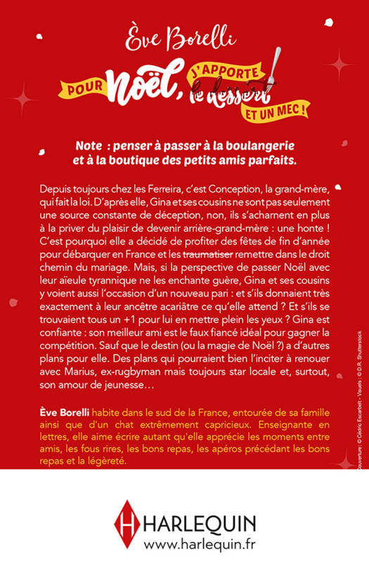 Depuis toujours chez les Ferreira, c’est Conception, la grand-mère, qui fait la loi. D’après elle, Gina et ses cousins ne sont pas seulement une source constante de déception, non, ils s’acharnent en plus à la priver du plaisir de devenir arrière-grand-mère : une honte ! C’est pourquoi elle a décidé de profiter des fêtes de fin d’année pour débarquer en France et les traumatiser remettre dans le droit chemin du mariage. Mais, si la perspective de passer Noël avec leur aïeule tyrannique ne les enchante guère, Gina et ses cousins y voient aussi l’occasion d’un nouveau pari : et s’ils donnaient très exactement à leur ancêtre acariâtre ce qu’elle attend ? Et s’ils se trouvaient tous un +1 pour lui en mettre plein les yeux ? Gina est confiante : son meilleur ami est le faux fiancé idéal pour gagner la compétition. Sauf que le destin (ou la magie de Noël ?) a d’autres plans pour elle. Des plans qui pourraient bien l’inciter à renouer avec Marius, ex-rugbyman mais toujours star locale et, surtout, son amour de jeunesse…