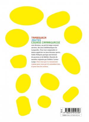 Tambourin, joutes, course camarguaise sont devenus, au gré de temps souvent anciens, des jeux emblématiques du Languedoc. Pour tout comprendre et mieux apprécier ces jeux devenus sports, Valdo Pellegrin partage une histoire de passions et de fidélité, illustrée de manière originale par Frédéric Cartier-Lange. Pour ceux qui s'y connaissent comme pour ceux qui n'y entendent rien, et pour tous les curieux.