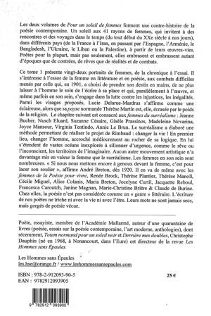 Les deux volumes de Pour un soleil de femmes, forment une contre-histoire de la poésie contemporaine. Un soleil aux 41 rayons de femmes qui invitent à des rencontres et des voyages dans le temps (du tout début du XXe siècle à nos jours), dans différents pays (de la France à l’Iran, en passant par l’Espagne, l’Arménie, le Bangladesh, l’Ukraine, le Liban ou la Palestine), à partir de leurs œuvres-vies. Poètes pour la plupart, mais pas seulement, elles embrasent et embrassent autant d’époques que de contrées, de rêves que de réalités et de combats.