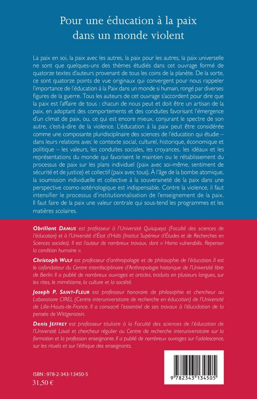 Cet ouvrage rappelle l'importance de l'éducation à la Paix dans un monde si humain, rongé par les figures de la guerre. La paix est l'affaire de tous : chacun peut et doit être artisan de la paix en conjurant le spectre de la violence. Contre celle-ci, il faut intensifier le l'enseignement de la paix, et en faire la valeur centrale des programmes et des matières scolaires.