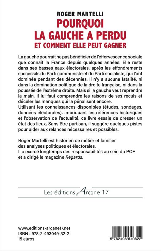 La gauche pourrait ne pas bénéficier de l'effervescence sociale que connaît la France depuis quelques années. Elle reste dans ses basses eaux électorales, après les effondrements successifs du Parti communiste et du Parti socialiste, qui l'ont dominée pendant des décennies. Il n'y a aucune fatalité, ni dans la domination politique de la droite française, ni dans la poussée de l'extrême droite. Mais si la gauche veut reprendre la main, il lui faut comprendre les raisons de ses reculs et déceler les manques qui la pénalisent encore. Utilisant les connaissances disponibles (études, sondages, données électorales), imbriquant les références historiques et l'observation de l'actualité, ce livre essaie de dresser un état des lieux. Sans être partisan, il suggère quelques pistes pour aider aux relances nécessaires et possibles.