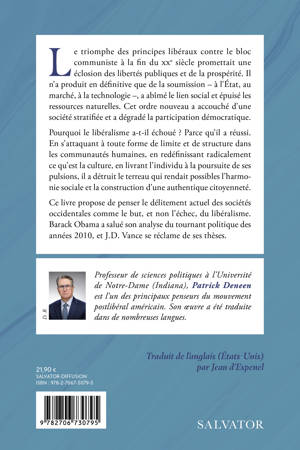 Le triomphe des principes libéraux contre le bloc communiste à la fin du e siècle promettait une éclosion des libertés publiques et de la prospérité. Il n'a produit en définitive que de la soumission – à l'État, au marché, à la technologie –, a abîmé le lien social et épuisé les ressources naturelles. Cet ordre nouveau a accouché d'une société stratifiée et a dégradé la participation démocratique. Pourquoi le libéralisme a-t-il échoué ? Parce qu'il a réussi. En s'attaquant à toute forme de limite et de structure dans les communautés humaines, en redéfinissant radicalement ce qu'est la culture, en livrant l'individu à la poursuite de ses pulsions, il a détruit le terreau qui rendait possibles l'harmonie sociale et la construction d'une authentique citoyenneté. Ce livre propose de penser le délitement actuel des sociétés occidentales comme le but, et non l'échec, du libéralisme.