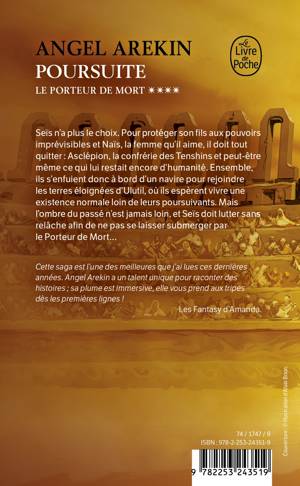 Seïs n’a plus le choix. Pour protéger Naïs, la femme qu’il aime, et son fils aux pouvoirs imprévisibles, il doit tout quitter : Asclépion, la confrérie des Tenshins et peut-être même ce qui lui restait encore d’humanité. Ensemble, ils s’enfuient donc à bord d’un navire pour rejoindre les terres éloignées d’Ulutil, où ils espèrent pouvoir vivre une vie normale loin de leurs poursuivants. Mais l’ombre du passé n’est jamais loin et Seïs doit lutter sans relâche afin ne pas se laisser submerger par le Porteur de Mort…