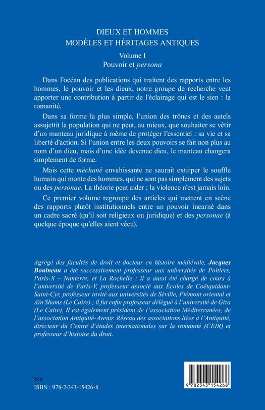 L'union des trônes et des autels assujettit la population qui ne peut que souhaiter se vêtir d'un manteau juridique à même de protéger l'essentiel : sa vie et sa liberté d'action. Ce premier volume de cet ouvrage regroupe des articles qui mettent en scène des rapports plutôt institutionnels entre un pouvoir incarné dans un cadre sacré et des personae.