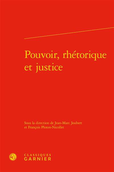 Dans une vingtaine de textes sur les domaines grec et latin, sont étudiées les relations entre le pouvoir, la rhétorique et la justice à travers les textes de penseurs des époques antique, médiévale et moderne tels que Platon, Aristote, Cicéron, Pline, saint Augustin, P. Ricoeur, et ceux d'écrivains tels qu'Ovide, Apulée, La Fontaine, F. Dostoïevski, F. Mauriac.