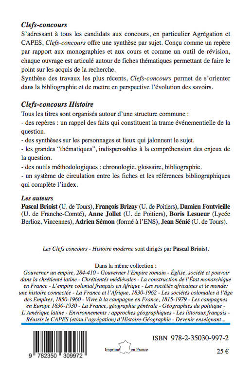 LA référence pour le sujet d'Histoire moderne de l'agrégation et du CAPES d'Histoire-Géographie