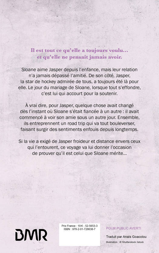 Sloane aime Jasper depuis l’enfance, mais leur relation n’a jamais dépassé l’amitié. De son côté, Jasper, la star de hockey admirée de tous, a toujours été là pour elle. Le jour du mariage de Sloane, lorsque tout s’effondre, c’est lui qui accourt pour la soutenir.