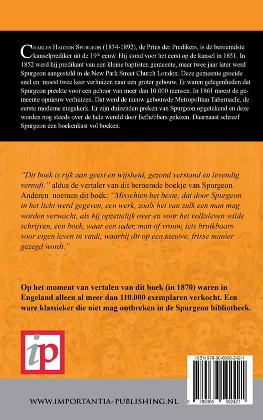 “Dit boek is rijk aan geest en wijsheid, gezond verstand en levendig vernuft,” aldus de vertaler van dit beroemde boekje van Spurgeon. Anderen noemen dit boek: “Misschien het beste, dat door Spurgeon in het licht werd gegeven, een werk, zoals het van zulk een man mag worden verwacht, als hij opzettelijk over en voor het volksleven wilde schrijven, een boek, waar een ieder, man of vrouw, iets bruikbaars voor eigen leven in vindt, waarbij dit op een nieuwe, frisse manier gezegd wordt.”
