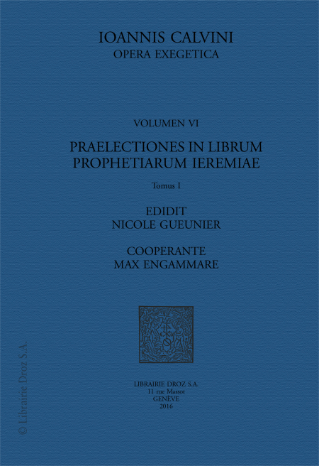 Professées en latin entre 1559 et 1563 à l'Auditoire de Genève, les Praelectiones in librum prophetiarum Jeremiae sont l'œuvre de la fin de la vie de Calvin. Sténographié sur place, dédicacé à l'Electeur Palatin, l'ouvrage est publié en septembre 1563 par Jean Crespin, accompagné des Lamentationes (non reprises ici). Au XVIe s., il n'a connu que trois éditions et une traduction en français en 1565, puis n'a été repris que dans des éditions collectives à partir du XVIIe s. Calvin donne ses leçons selon le principe de la lectio continua : chaque verset est cité (souvent déjà glosé) en latin, puis accompagné d'un commentaire de longueur variable. La richesse de ces commentaires peut s'explorer d'un quadruple point de vue : d'abord, celui de la rhétorique: il s'agit d'une argumentation pour la parole prophétique de Jérémie auquel l'auteur s'identifie, explicitement ou non. Celui de la philologie (extrême attention à la lettre du texte bien que Calvin ne soit pas un hébraïsant confirmé). Celui de l'histoire avec un intérêt marqué pour les realia bibliques. Celui enfin du "style biblique", qui met en tension les principes de la copia (anaphores, synonymie) et de la brevitas (épiphonèmes). La présente édition élucide les citations et allusions aux nombreux interpretes antiques, médiévaux ou contemporains de Calvin, ainsi qu’à la Bible. Le texte des Prælectiones est encore comparé à celui des sermons sur Jérémie, donnés en français. Un index et la publication de l’édition française de 1565, disponible en POD et sur le site Calvin et Genève 16, sont des outils qui facilitent la consultation.