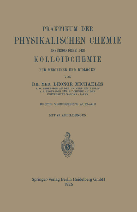 Praktikum Der Physikalischen Chemie Insbesondere Der Kolloidchemie Für Mediziner Und Biologen
