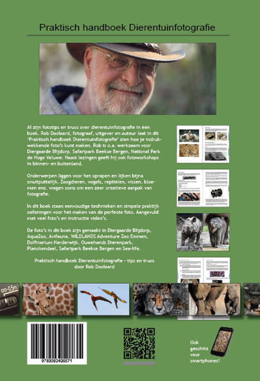 Rob Doolaard, fotograaf, uitgever en auteur, laat in dit ‘Praktisch handboek Dierentuinfotografie’ zien hoe je indrukwekkende foto’s kunt maken. Rob is o.a. werkzaam voor Diergaarde Blijdorp, Safaripark Beekse Bergen en Het Nationale Park de Hoge Veluwe. Naast lezingen geeft hij ook fotografieworkshops verspreid over heel Nederland.