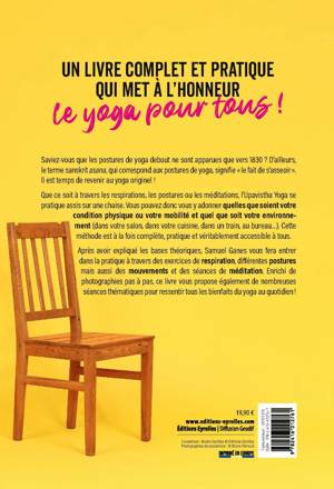 Que ce soit à travers les respirations, les postures ou les méditations, l'Upavistha Yoga se pratique assis sur une chaise. Vous pouvez donc vous y adonner quelles que soient votre condition physique ou votre mobilité et quel que soit votre environnement (dans votre salon, dans votre cuisine, dans un train, au bureau...). Cette méthode est à la fois complète, pratique et véritablement accessible à tous.