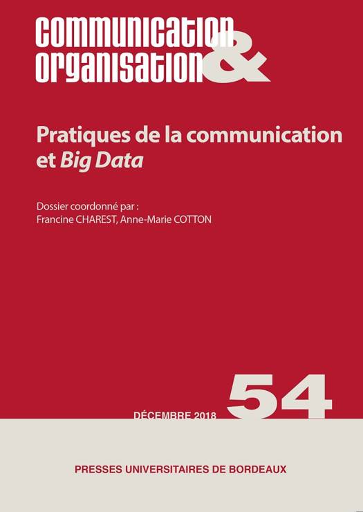 Le phénomène des Big Data s'est rapidement imposé comme un enjeu majeur au niveau mondial pour les organisations qui les collectent et les exploitent, mais il l'est tout autant pour les individus dont les traces numériques sont suivies, répertoriées, analysées et croisées que pour les institutions qui ont pour objectif de réguler les systèmes d'information et de protection de la vie privée. Le numéro 54 de la revue Communication & Organisation veut questionner les enjeux liés aux Big Data dans une perspective informationnelle et communicationnelle tout en tenant compte des ramifications managériales que sous-tend l'usage stratégique des données massives. Cinq défis auxquels doivent faire face les professionnels de la communication en organisation sont évoqués dans ce numéro : la montée en compétences et la professionnalisation ; la pertinence stratégique ; la qualification et le traitement ; la confiance et la défiance ; et enfin, différents modèles de présence numérique. Confronté aux données massives, comment le professionnel de la communication peut-il composer avec le paradoxe de la volatilité versus de la permanence de la présence numérique ? C'est ce que ce numéro questionne à travers les différents thèmes évoqués