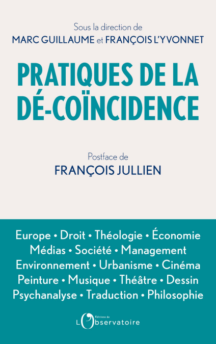 Quand une situation coïncide, qu’elle est en adéquation avec elle-même, elle est portée à se satisfaire de son adéquation et s’y enlise. Il faut donc défaire cette coïncidence qui se fige – ou dé-coïncider – pour y rouvrir des possibles et la remettre en chantier. De là que la dé-coïncidence ne projette pas de modèle, ne vise pas à établir un nouvel ordre, à faire surgir un nouveau monde. Elle n’est pas plus une « méthode », ne se programmant pas, qu’une « recette » qu’on ne ferait qu’appliquer. La dé-coïncidence est un art d’opérer : en détectant dans chaque situation bloquée dans son adéquation comment la fissurer, elle y re-déploie du même coup un avenir. En quoi la dé-coïncidence est de terrain, ne pose pas de principe, mais est d’emblée effective. Or c’est cette opérativité de la dé-coïncidence qui est montrée à travers champs dans les textes de ce volume, tous issus d’un séminaire de l’association Dé-coïncidences. On la constate à l’œuvre en y passant du droit à la théologie, de l’économie à la psychanalyse, de la musique au dessin comme à la peinture, ou du management à l’environnement ; ou bien des leçons du vivant à des réflexions sur la traduction, de la mise en scène théâtrale au cinéma comme au journalisme ; ou bien encore du dérèglement climatique à la ville-machine, des études de genre au destin de l’Europe. Sans oublier le champ même de la philosophie s’interrogeant alors sur ses propres raidissements y bloquant la pensée. Autant d’entrées dans une pratique particulière, mais qui font signe vers une stratégie commune : comment retrouver une initiative dans ce qui devient conforme et coïncidant et, par là, s’immobilise. On y verra du même coup comment ré-activer le politique dans la Cité.