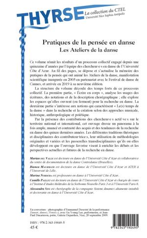 La structure de ce volume découle des temps forts du processus collectif engagé par l'équipe des chercheur.e.s en danse de l'Université Côte d'Azur. La première partie analyse les usages des écritures, des notations et de la description chorégraphique ; elle explore les espaces qu'elles ouvrent (ou ferment) pour la recherche en danse. La deuxième partie s'intéresse aux notions qui caractérisent « Le(s) temps de la danse » dans la recherche et la création selon des approches musicale, historique, anthropologique et poïétique. Cet livre dresse un panorama à la fois ample, nuancé et contrasté des acquis et des tendances de la recherche en danse des quinze dernières années.